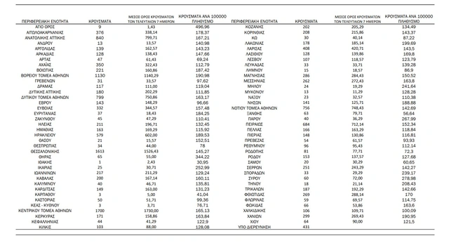 - Νήσων: 141 κρούσματα