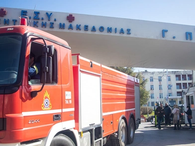 «Σας ενημερώνουμε ότι σήμερα 6 Απριλίου και περί ώρα 08.50 πρωινή εκδηλώθηκε αιφνιδίως φωτιά σε θάλαμο νοσηλείας της κλινικής COVID (Πέτρινο Κτίριο, 2ος όροφος) του Νοσοκομείου. Ενημερώθηκαν άμεσα η Πυροσβεστική Υπηρεσία, το Αστυνομικό Τμήμα Πυλαίας - Χορτιάτη και το ΕΚΑΒ – ΕΚΕΠΥ Β. Ελλάδος. Η Πυροσβεστική Υπηρεσία ανταποκρίθηκε με μεγάλη δύναμη και ειδικά οχήματα, και κατορθώθηκε σε πολύ σύντομο χρόνο να τεθεί σε έλεγχο και να κατασβεστεί η πυρκαγιά. Επίσης, μονάδες του ΕΚΑΒ – ΕΚΕΠΥ προσήλθαν στο Νοσοκομείο για τη διαχείριση τυχόν επειγόντων περιστατικών, ενώ από την Αστυνομική Αρχή λήφθηκαν τα απαιτούμενα μέτρα τάξης.