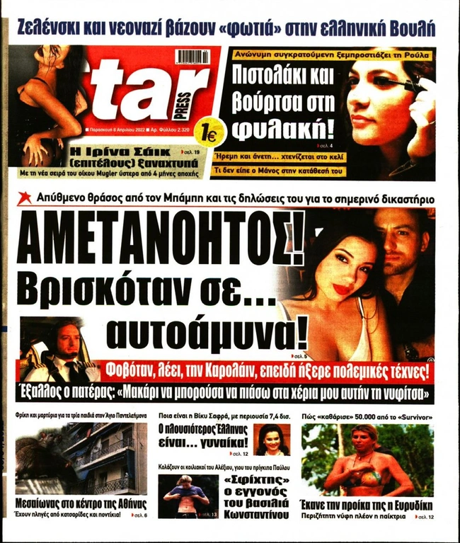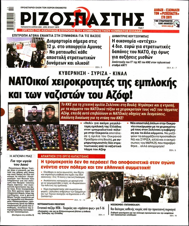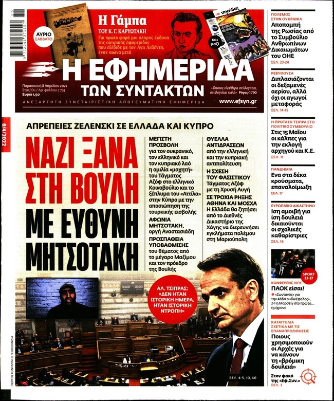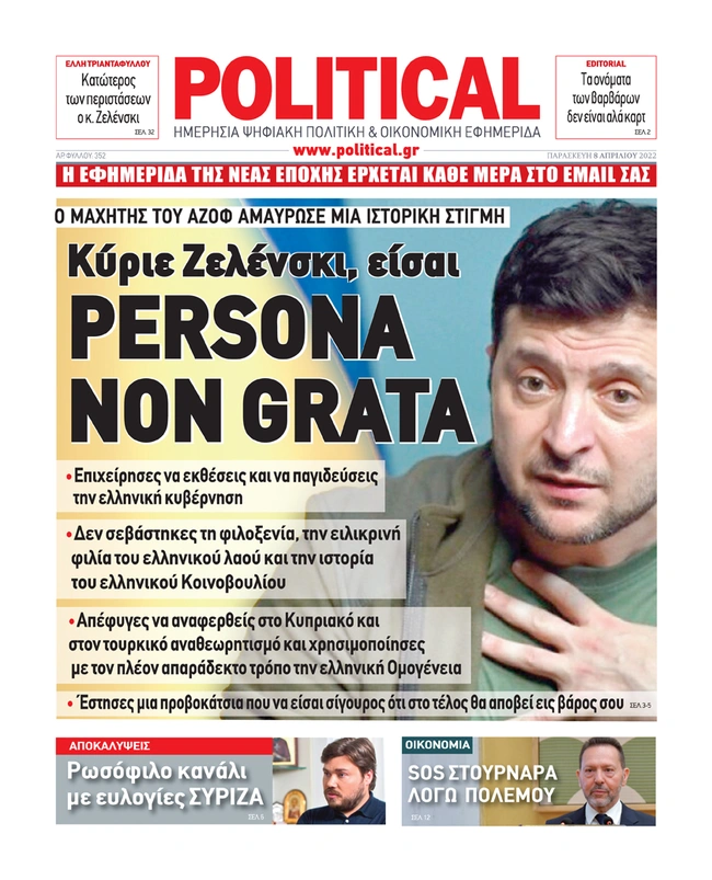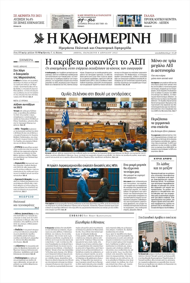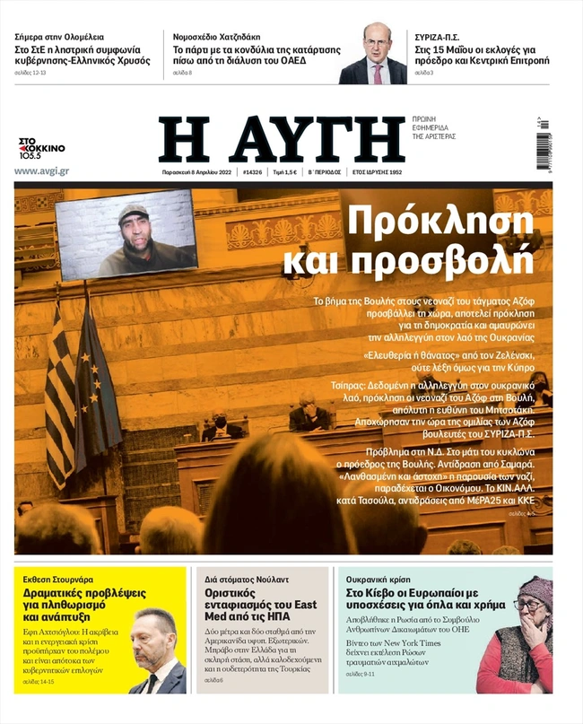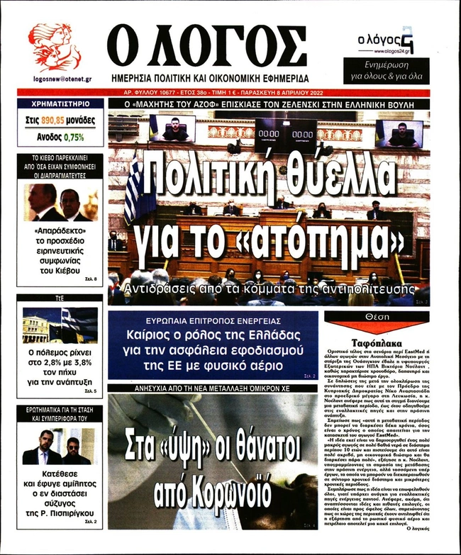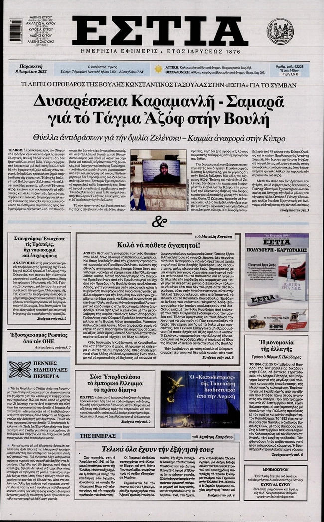 Τα πρωτοσέλιδα των ελληνικών εφημερίδων για σήμερα Παρασκευή 8 Απριλίου. Δείτε τι φιλοξενεί στην πρώτη του σελίδα ο πολιτικός και οικονομικός Τύπος και τα θέματα της επικαιρότητας που ξεχωρίζουν.