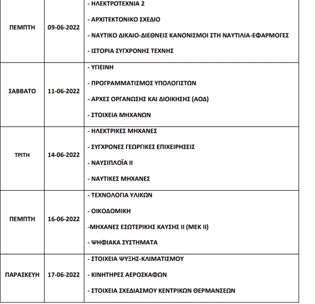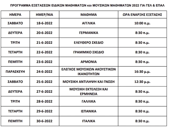 Τέλος, όπως αναφέρει το υπουργείο Παιδείας, ως προθεσμία διεξαγωγής Υγειονομικής Εξέτασης και Πρακτικής Δοκιμασίας των υποψηφίων (ΓΕΛ και ΕΠΑΛ) για εισαγωγή στα Τμήματα Επιστήμης Φυσικής Αγωγής και Αθλητισμού (ΤΕΦΑΑ) ακαδ. έτους 2022- 23 ορίζουμε το διάστημα από την Τετάρτη 15-6-2022 μέχρι και την Τρίτη 28-6-2022.