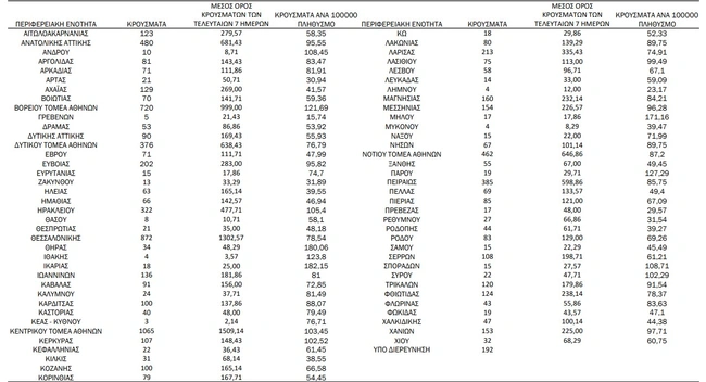 Η κατανομή των κρουσμάτων κορονοϊού σε όλη τη χώρα: