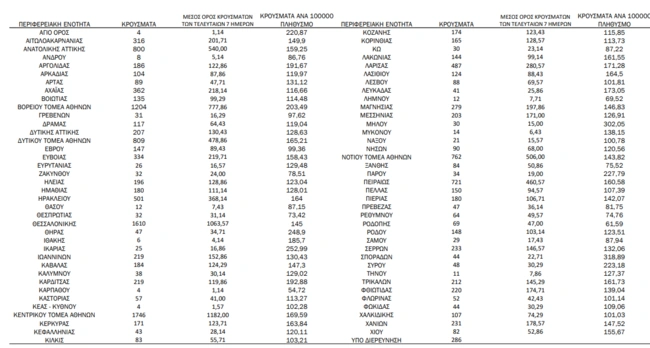 Αναλυτικότερα η κατανομή των κρουσμάτων: