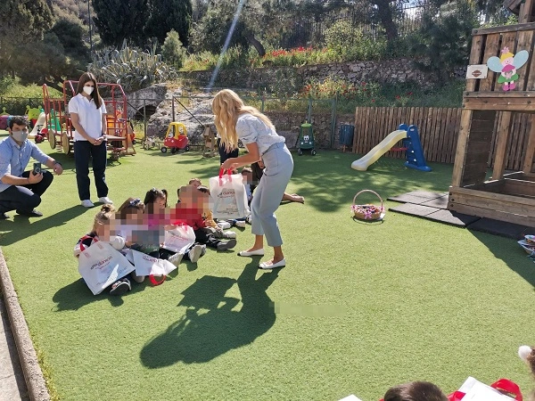 Η Πρέσβειρα της Ένωσης «Μαζί για το Παιδί» Δούκισσα Νομικού μαζί με παιδιά της Παιδικής Στέγης, διάβασε παιδικά παραμύθια, τραγούδησε τραγούδια και τους ευχήθηκε «Καλό Πάσχα» προσφέροντας σε κάθε παιδί ένα παιδικό βιβλίο των εκδόσεων ΔΙΟΠΤΡΑ.