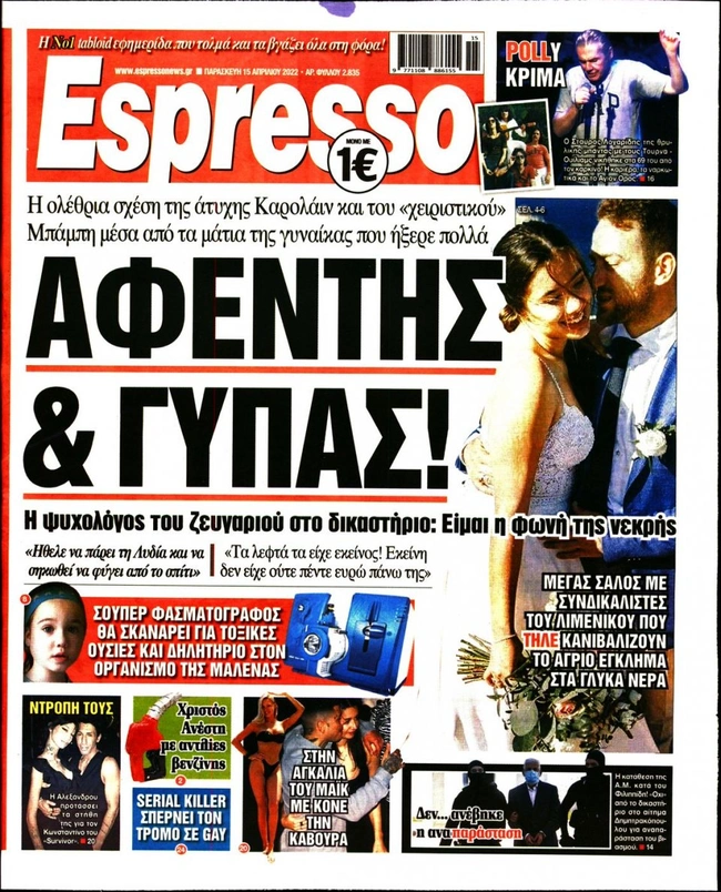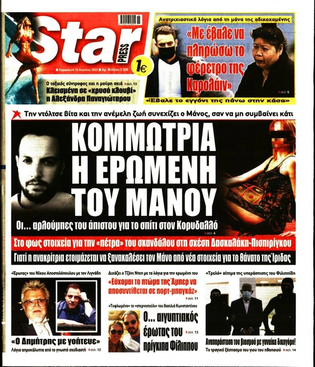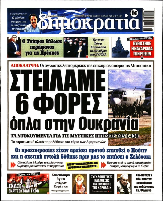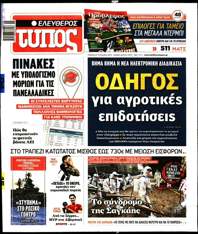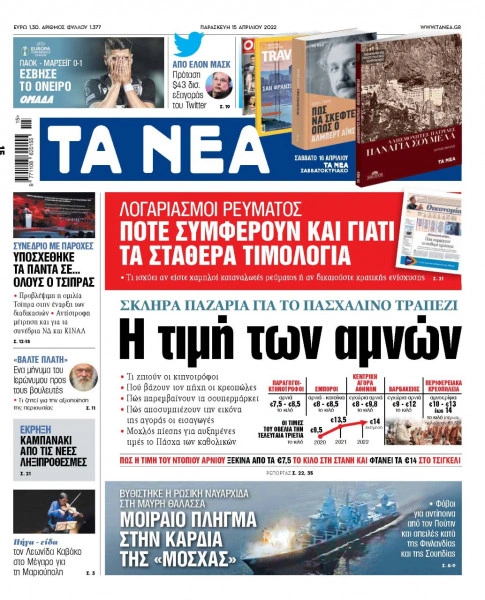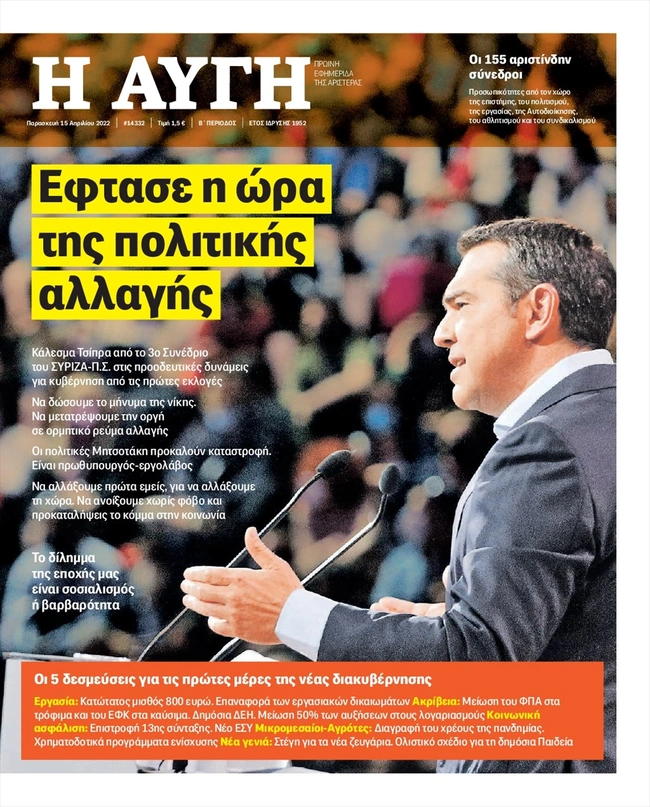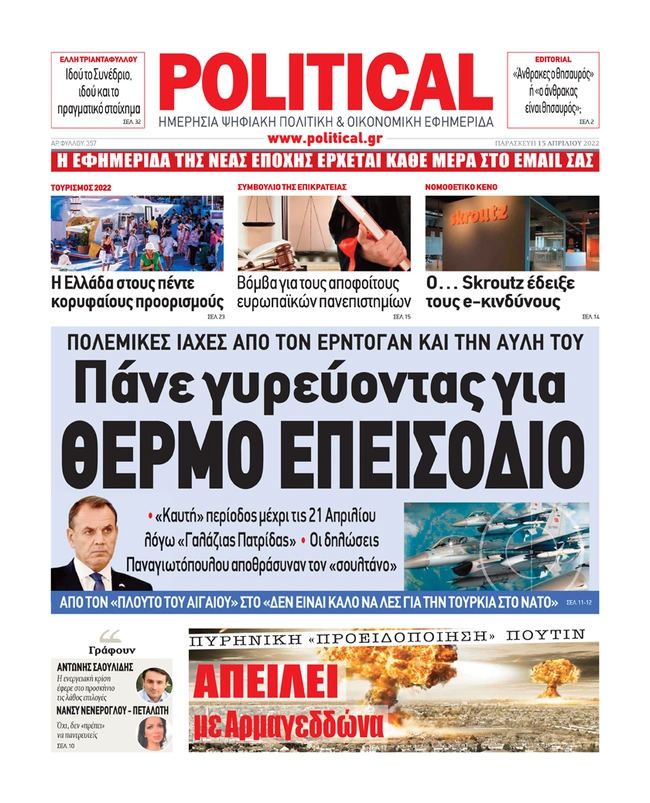 Τα πρωτοσέλιδα των ελληνικών εφημερίδων για σήμερα Παρασκευή 15 Απριλίου. Δείτε τι φιλοξενεί στην πρώτη του σελίδα ο πολιτικός και οικονομικός Τύπος και τα θέματα της επικαιρότητας που ξεχωρίζουν.