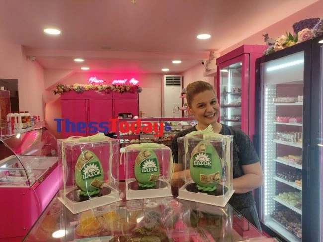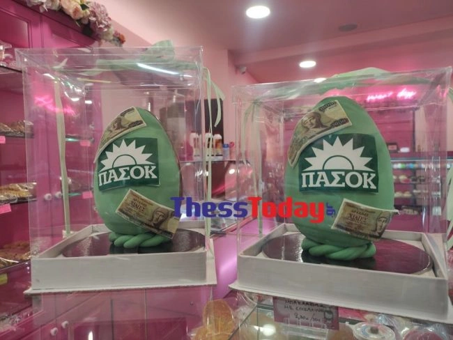Τα συγκεκριμένα πασχαλινά αυγά έχουν πράσινη ζαχαρόπαστα, χαρτονομίσματα των χιλίων δραχμών και φυσικά τον ήλιο του ΠΑΣΟΚ. Μάλιστα έχουν γίνει ανάρπαστα όχι μόνο στους Κατερινιώτες αλλά και σε πελάτες απ΄ όλη την Ελλάδα! «Έχουμε μείνει άφωνοι. Δεν πιστεύαμε την ανταπόκριση του κόσμου», αναφέρει στο ThessToday.gr η ζαχαροπλάστης και δημιουργός τους, Ελένη Πεΐδου.