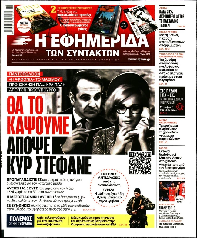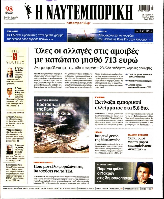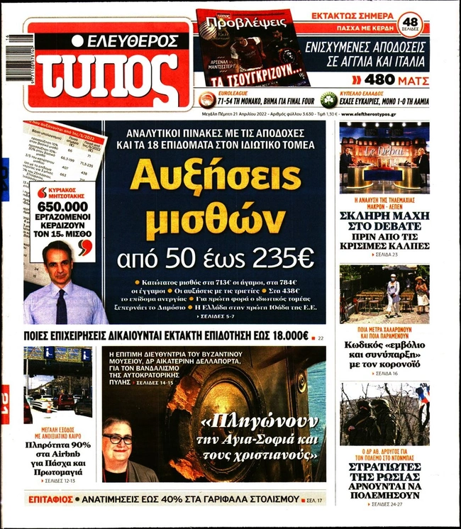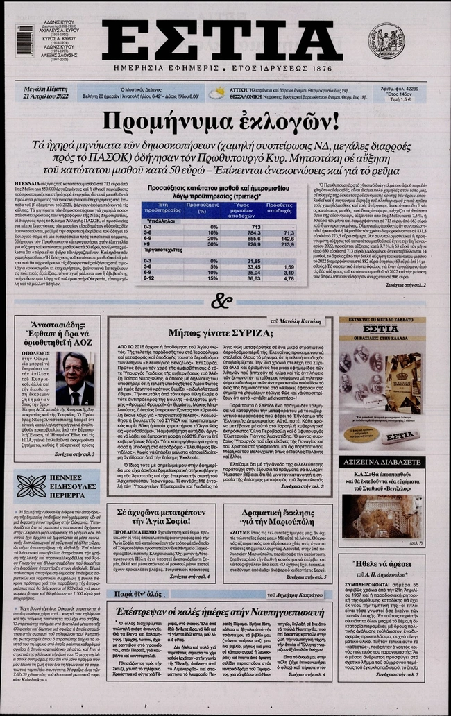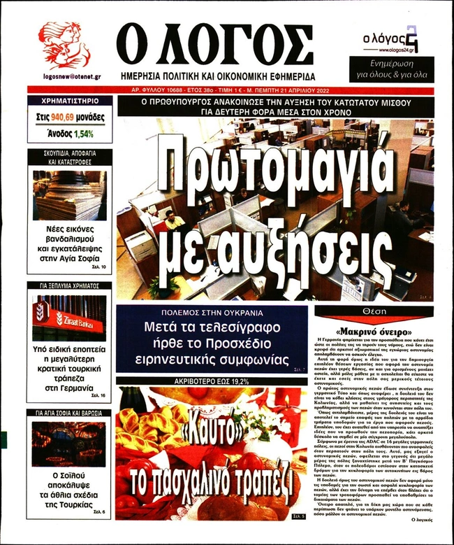 Τα πρωτοσέλιδα των ελληνικών εφημερίδων για σήμερα Μεγάλη Πέμπτη 21 Απριλίου. Δείτε τι φιλοξενεί στην πρώτη του σελίδα ο πολιτικός και οικονομικός Τύπος και τα θέματα της επικαιρότητας που ξεχωρίζουν.
