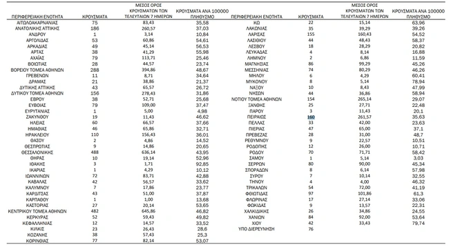 - Κεντρικός τομέας Αθηνών: 482 κρούσματα