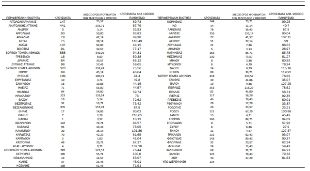 Αναλυτικά η κατανομή των κρουσμάτων κορονοϊού ανά Περιφερειακή Ενότητα