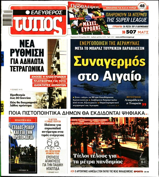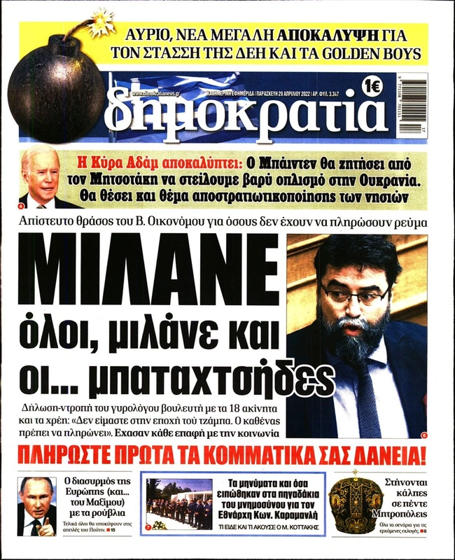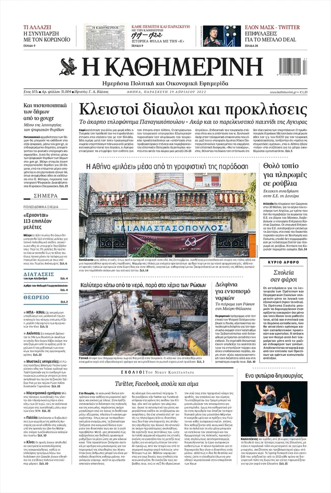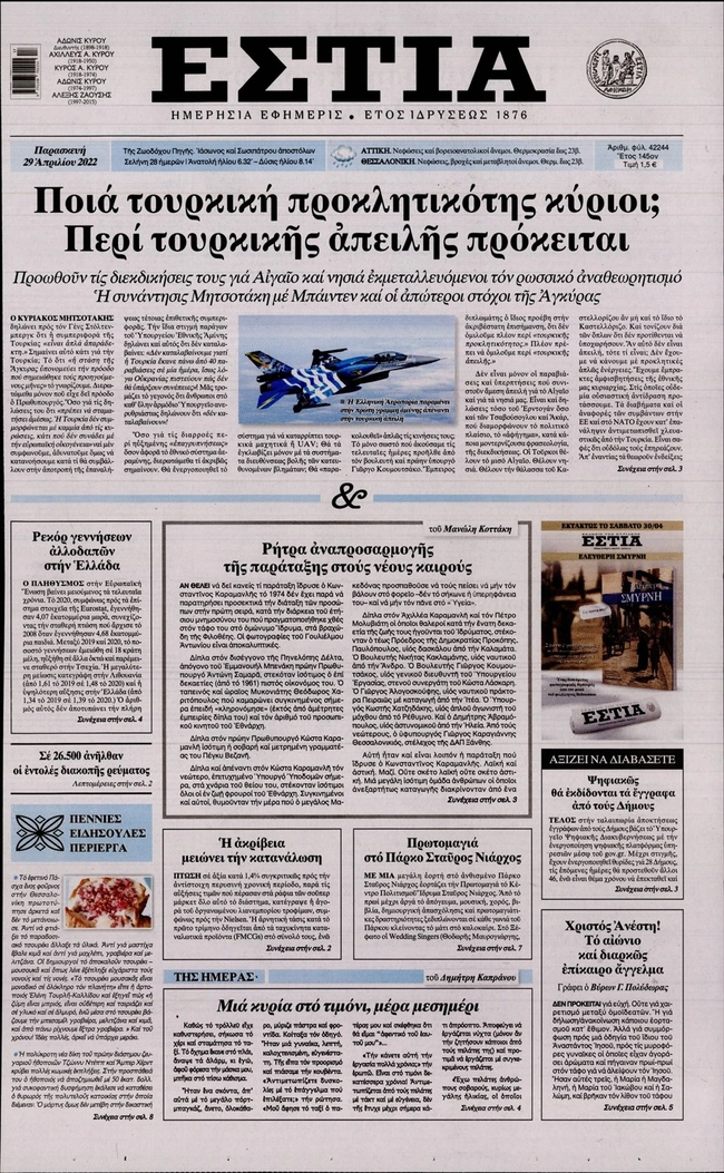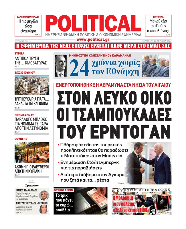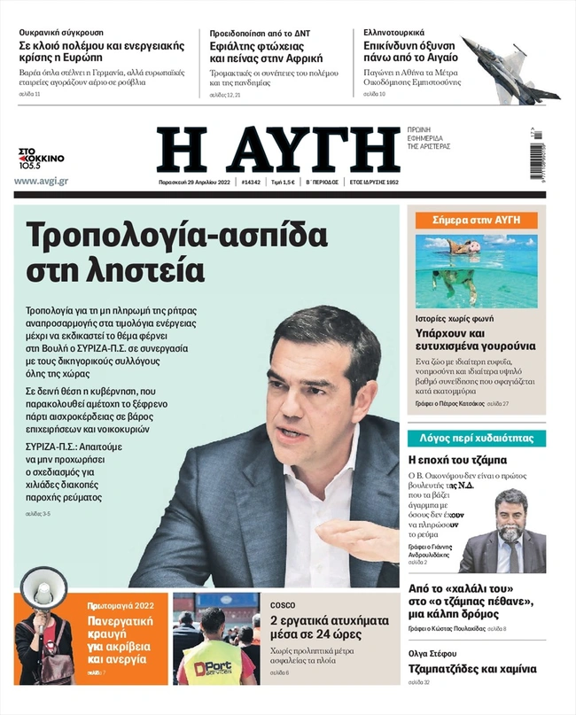 Τα πρωτοσέλιδα των ελληνικών εφημερίδων για σήμερα Παρασκευή 29 Απριλίου. Δείτε τι φιλοξενεί στην πρώτη του σελίδα ο πολιτικός και οικονομικός Τύπος και τα θέματα της επικαιρότητας που ξεχωρίζουν.