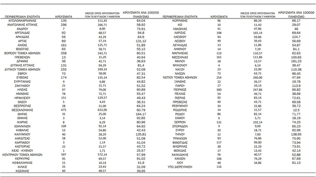 - Κεντρικός τομέας Αθηνών: 597 κρούσματα