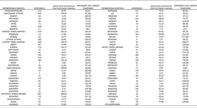 Αναλυτικά, τα κρούσματα στην Αττική: