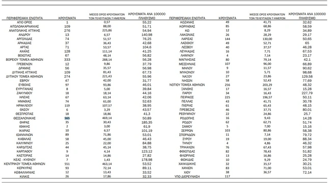 - Κεντρικός τομέας Αθηνών: 551 κρούσματα