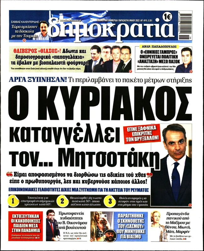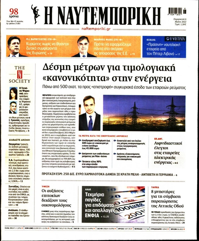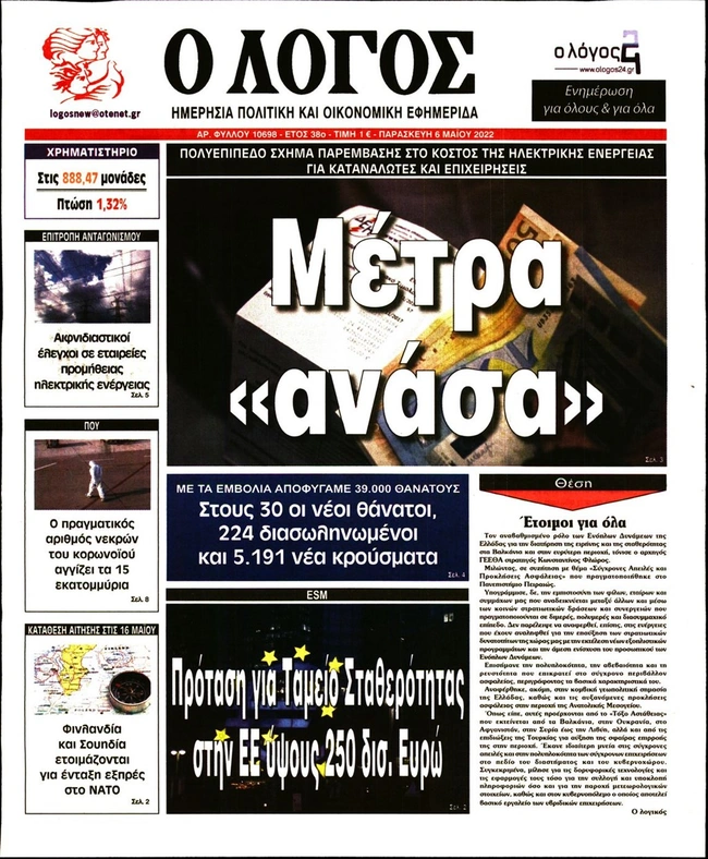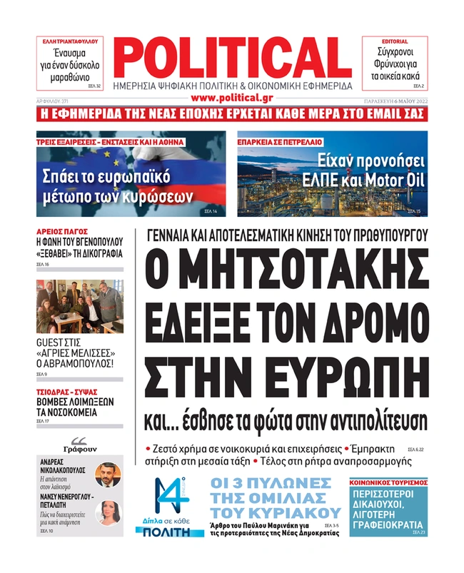 Τα πρωτοσέλιδα των ελληνικών εφημερίδων για σήμερα Παρασκευή 6 Μαΐου. Δείτε τι φιλοξενεί στην πρώτη του σελίδα ο πολιτικός και οικονομικός Τύπος και τα θέματα της επικαιρότητας που ξεχωρίζουν.