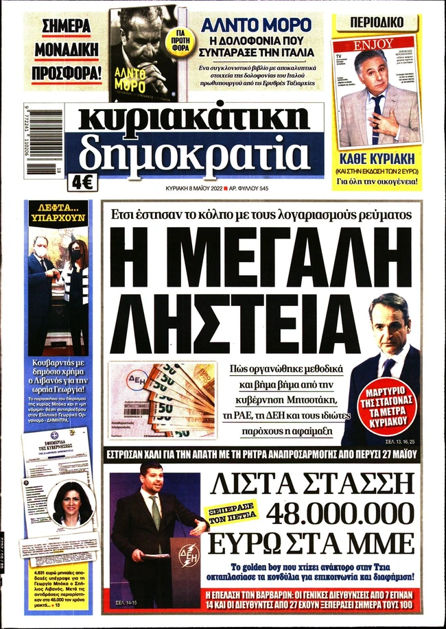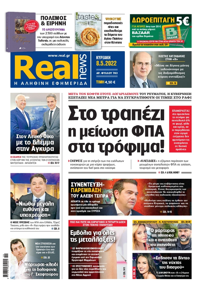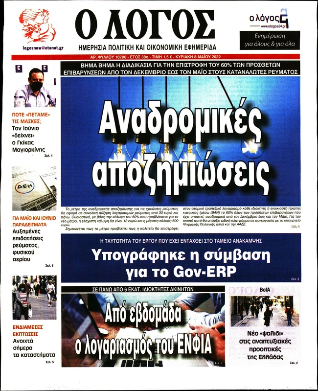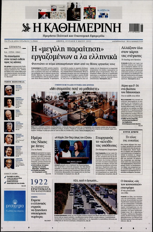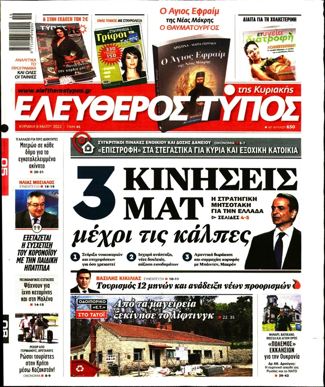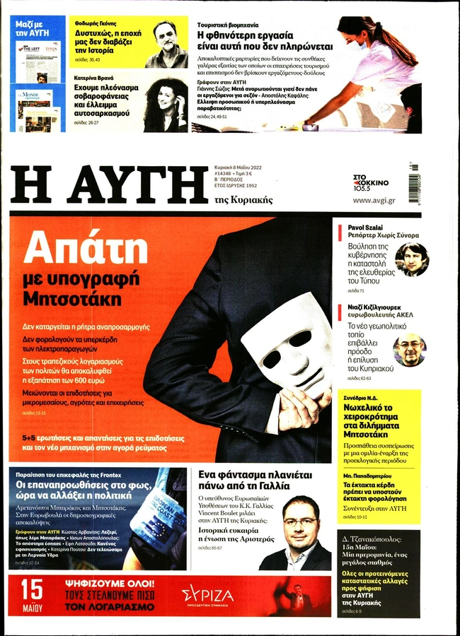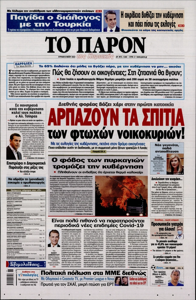 Τα πρωτοσέλιδα των ελληνικών εφημερίδων για σήμερα Κυριακή 8 Μαΐου. Δείτε τι φιλοξενεί στην πρώτη του σελίδα ο πολιτικός και οικονομικός Τύπος και τα θέματα της επικαιρότητας που ξεχωρίζουν.