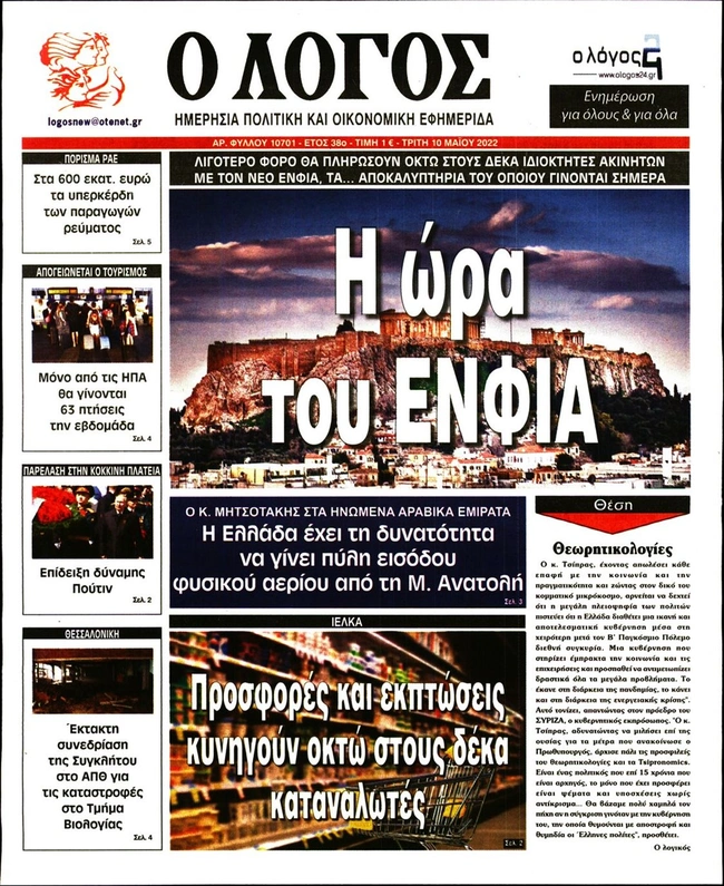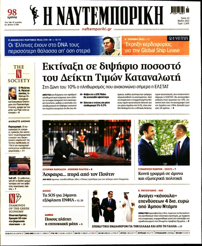 Τα πρωτοσέλιδα των ελληνικών εφημερίδων για σήμερα Τρίτη 10 Μαΐου. Δείτε τι φιλοξενεί στην πρώτη του σελίδα ο πολιτικός και οικονομικός Τύπος και τα θέματα της επικαιρότητας που ξεχωρίζουν.