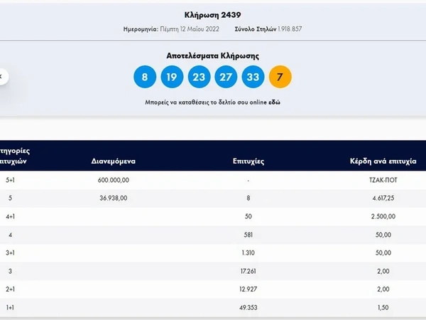 Σήμερα, Πέμπτη 12 Μαΐου 2022, στην κλήρωση Τζόκερ του ΟΠΑΠ, μοιράζεται στους τυχερούς της πρώτης κατηγορίας το ποσό των περίπου 600.000 ευρώ