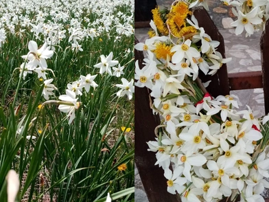 Πάνω στην κουβέντα για το καλωσόρισμα, η Φρειδερίκη Χαϊτίδου μιλάει με ενθουσιασμό για το τοπίο και την σπάνια ομορφιά του, ακριβώς στη συγκεκριμένη χρονική στιγμή που ο νάρκισσος ανθίζει και «πλημμυρίζει» τον τόπο με αρώματα και χρώματα. Κατά τη διάρκεια της συζήτησης για τον Νάρκισσο poeticus, όπως ονομάζεται και επισήμως, φέρνει στη μνήμη της ένα ντοκιμαντέρ που είχε παρακολουθήσει πριν από καιρό για το συγκεκριμένο λουλούδι, που συνδέεται με τον ελληνικό μύθο του Νάρκισσου. Θυμάται, μάλιστα, ότι παρουσίαζε μια περιοχή στις Άλπεις, όπου βρίσκονταν καλλιέργειες νάρκισσων για την παρασκευή διαφόρων προϊόντων. «Το ντοκιμαντέρ ήταν ξενόγλωσσο και δεν μπορούσα ακριβώς να αντιληφθώ όσα λέγονταν σε αυτό. Όμως, όταν είδα κάποιον να μυρίζει έναν νάρκισσο, σκέφτηκα πως γνωρίζω ακριβώς πώς μυρίζει αυτό το υπέροχο λουλούδι», λέει στο ΑΠΕ-ΜΠΕ η κ. Χαϊτίδου, κάτοικος της περιοχής.