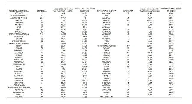 - Κεντρικός τομέας Αθηνών: 467 κρούσματα