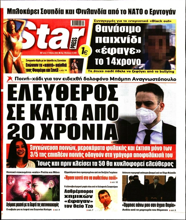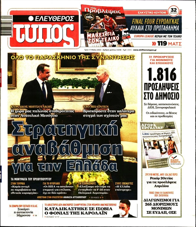 Τα πρωτοσέλιδα των ελληνικών εφημερίδων για σήμερα Τρίτη 17 Μαΐου. Δείτε τι φιλοξενεί στην πρώτη του σελίδα ο πολιτικός και οικονομικός Τύπος και τα θέματα της επικαιρότητας που ξεχωρίζουν.