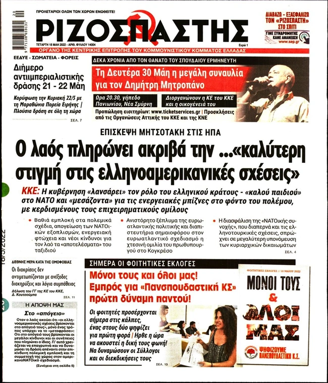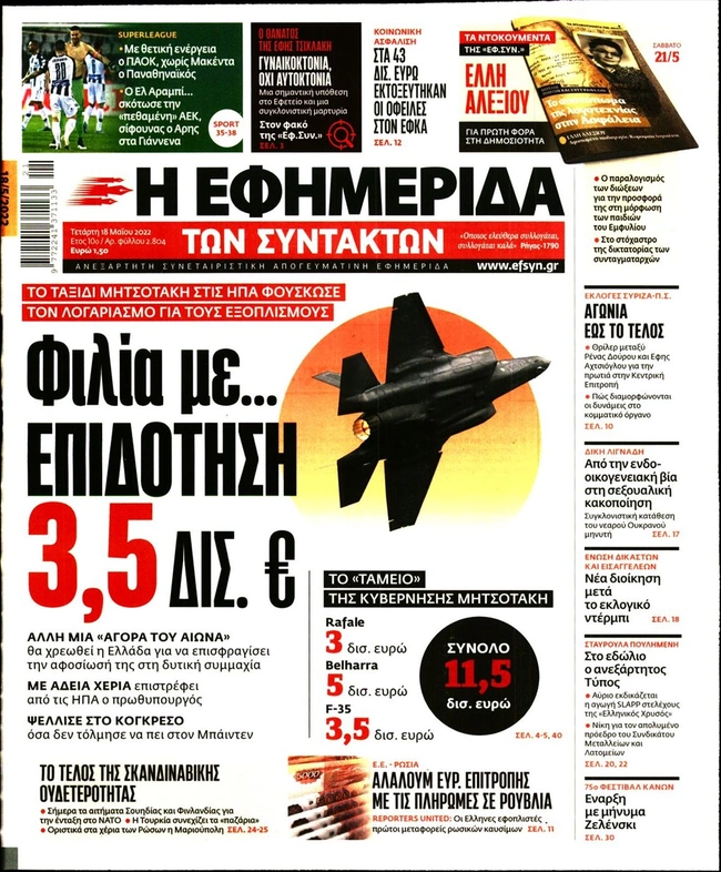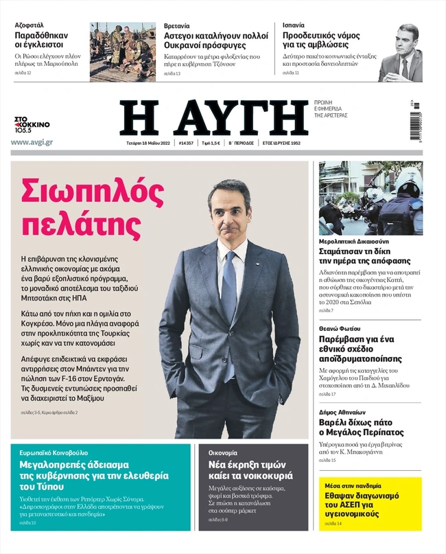 Τα πρωτοσέλιδα των ελληνικών εφημερίδων για σήμερα Τετάρτη 18 Μαΐου. Δείτε τι φιλοξενεί στην πρώτη του σελίδα ο πολιτικός και οικονομικός Τύπος και τα θέματα της επικαιρότητας που ξεχωρίζουν.