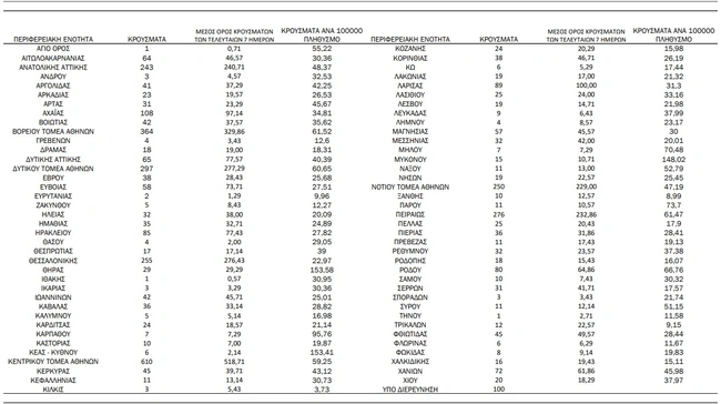 Η κατανομή των κρουσμάτων σε όλη τη χώρα: