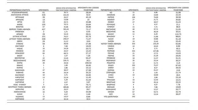 - Κεντρικός τομέας Αθηνών: 672 κρούσματα