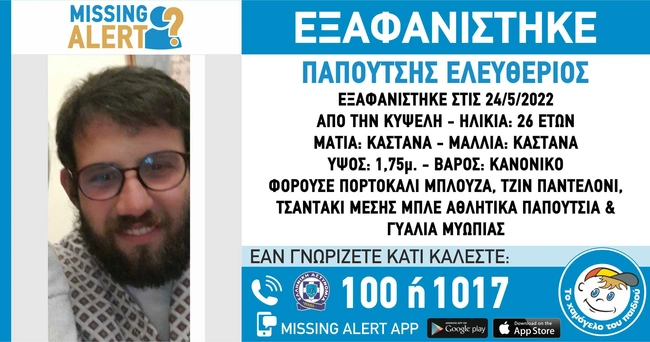 Στην ανακοίνωση από το «Χαμόγελο του Παιδιού» αναφέρεται: «Ο Παπουτσής Ελευθέριος, ο οποίος αγνοούνταν από τις 24/05/2022 και για τον οποίο είχε ενεργοποιηθεί ο συναγερμός Missing Alert από Το Χαμόγελο του Παιδιού, εντοπίστηκε σήμερα 25/05/2022 κατά τις απογευματινές ώρες, καθώς έπεσε στις γραμμές μπροστά στο συρμό σε σταθμό του Μετρό». Όπως αναφέρεται στη σχετική ανακοίνωση, στο σημείο βρέθηκε η Πυροσβεστική και το ΕΚΑΒ, ο άντρας μεταφέρθηκε στο νοσοκομείο, όπου και ταυτοποιήθηκε ότι πρόκειται για το άτομο που αναζητούνταν.