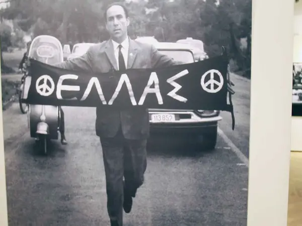 Έφτασε στον Τύμβο, άνοιξε ένα μικρό πανό που δεξιά και αριστερά είχε το σήμα της ειρήνης και στη μέση με κεφαλαία γράμματα τη λέξη «ΕΛΛΑΣ». Ακόμα και αυτός, ωστόσο, κατάφερε να κάνει την πορεία μέχρι περίπου το ύψος της Αγίας Παρασκευής. Μετά οι αστυνομικοί τον συνέλαβαν.
