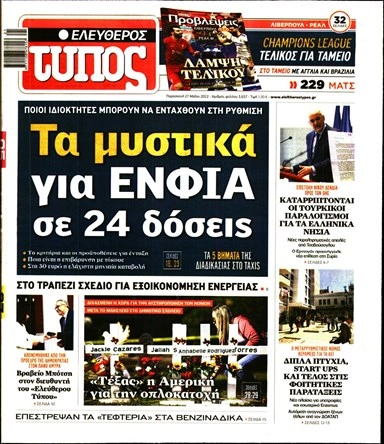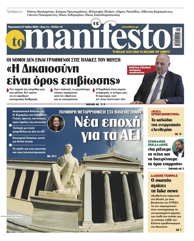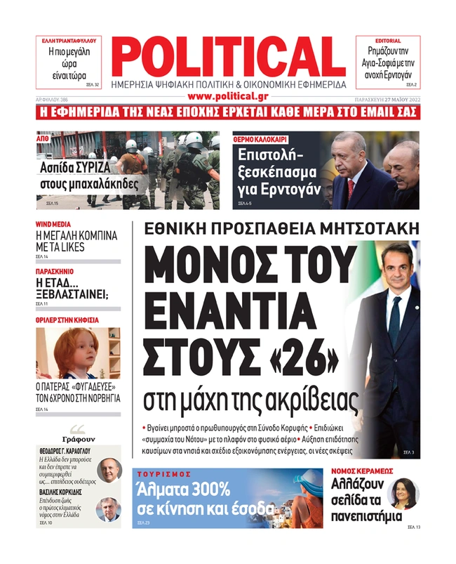 Τα πρωτοσέλιδα των ελληνικών εφημερίδων για σήμερα Παρασκευή 27 Μαΐου. Δείτε τι φιλοξενεί στην πρώτη του σελίδα ο πολιτικός και οικονομικός Τύπος και τα θέματα της επικαιρότητας που ξεχωρίζουν.