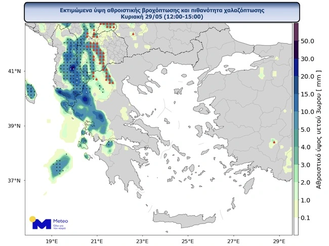 Την Κυριακή (29-05-2022) κατά τόπους ισχυρές βροχές και καταιγίδες θα εκδηλωθούν :