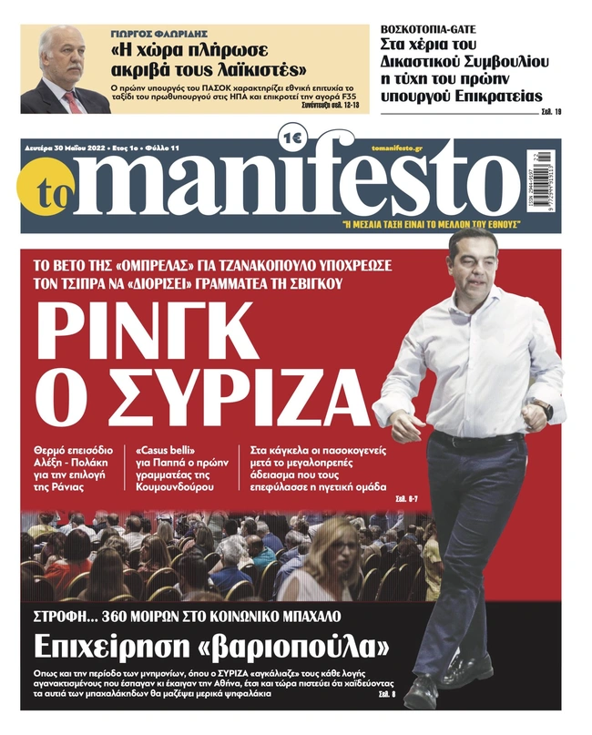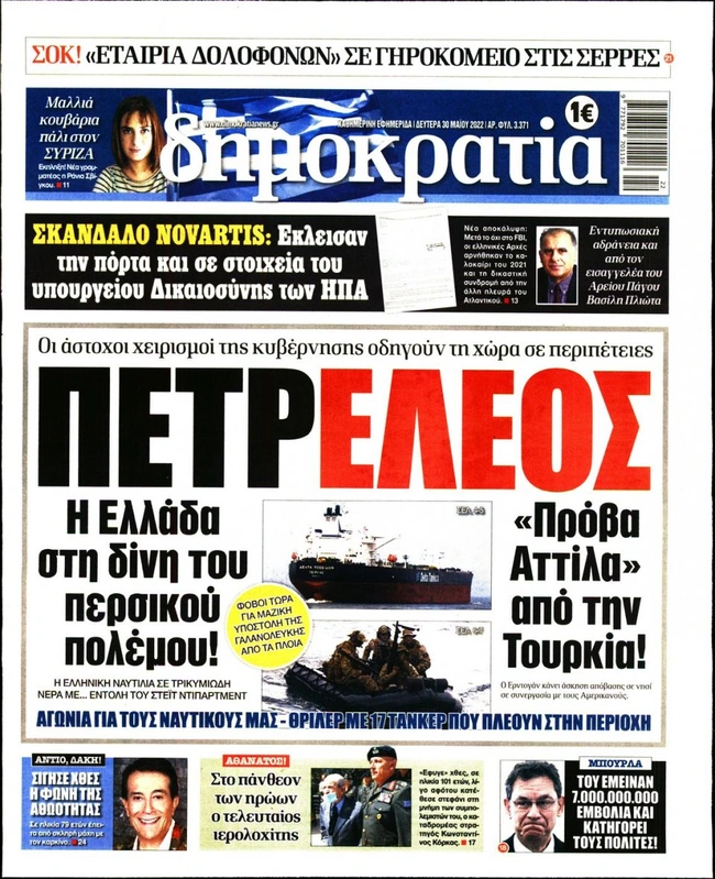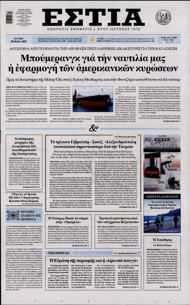 Τα πρωτοσέλιδα των ελληνικών εφημερίδων για σήμερα Δευτέρα 30 Μαΐου. Δείτε τι φιλοξενεί στην πρώτη του σελίδα ο πολιτικός και οικονομικός Τύπος και τα θέματα της επικαιρότητας που ξεχωρίζουν.
