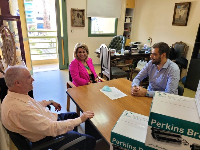 Τη δωρεά παρέδωσε ο γραμματέας της Πολιτικής Επιτροπής της ΝΔ, Παύλος Μαρινάκης, σε συνάντησή του με τη Διοικήτρια και Πρόεδρο του ΔΣ του Κέντρου Εκπαιδεύσεως και Αποκαταστάσεως Τυφλών, Σοφία Χαμονικολάου, στις εγκαταστάσεις της Κεντρικής Υπηρεσίας του φορέα.