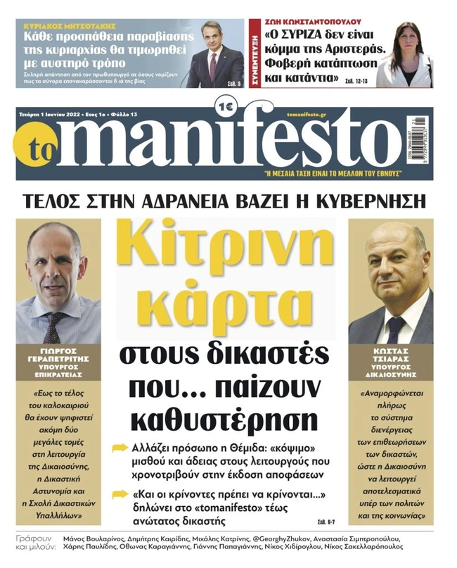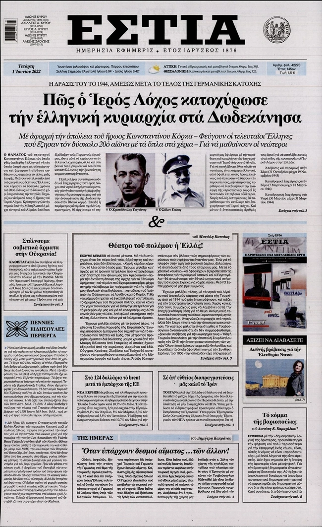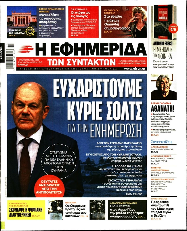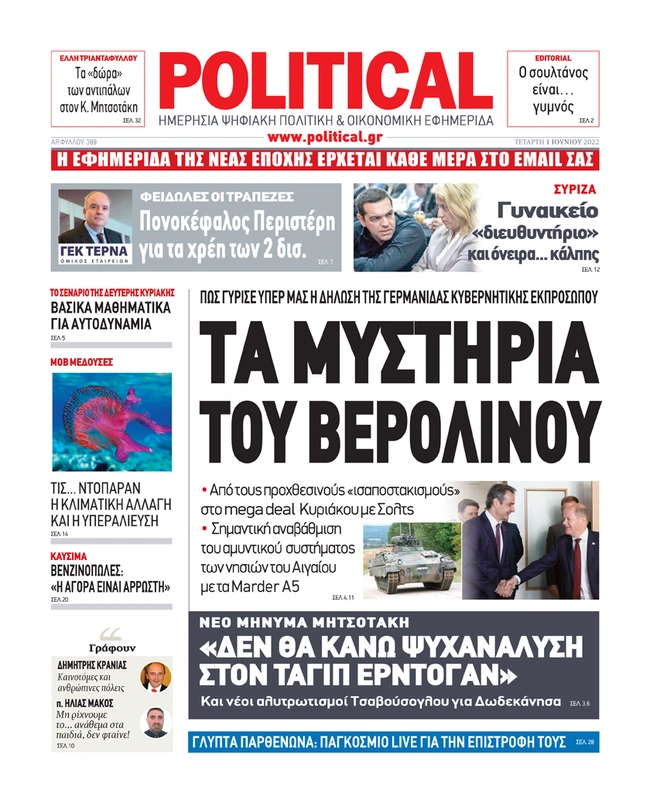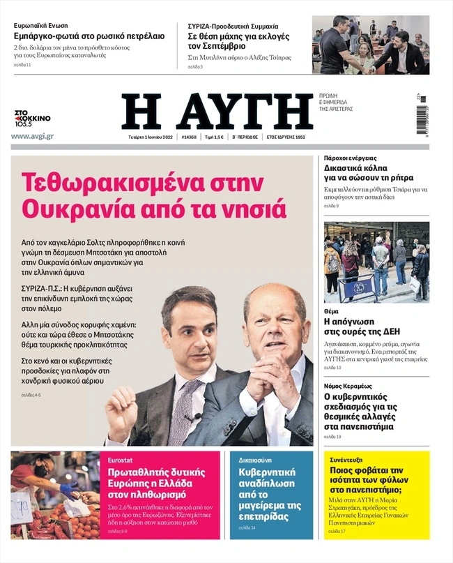 Τα πρωτοσέλιδα των ελληνικών εφημερίδων για σήμερα Τετάρτη 1 Ιουνίου. Δείτε τι φιλοξενεί στην πρώτη του σελίδα ο πολιτικός και οικονομικός Τύπος και τα θέματα της επικαιρότητας που ξεχωρίζουν.