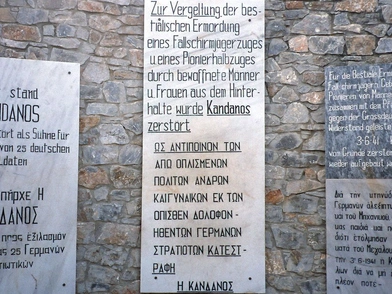 «Εδώ υπήρχε η Κάνδανος. Κατεστράφη προς εξιλασμόν της δολοφονίας 25 Γερμανών στρατιωτών.