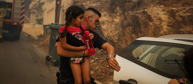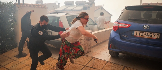 Οι συνθήκες στην περιοχή είναι αποπνικτικές, ενώ σύμφωνα με μαρτυρίες, υπάρχει κόσμος που κρατά λάστιχα στα χέρια, ενώ κάποιοι άλλοι τρέχουν να φύγουν άρον άρον από την περιοχή. Οι αναζωπυρώσεις είναι συνεχείς, στην περιοχή πνέουν δυνατοί άνεμοι ενώ την ίδια ώρα πυροσβέστες και εθελοντές δίνουν μάχη για την κατάσβεση της πυρκαγιάς.