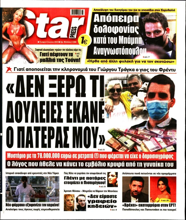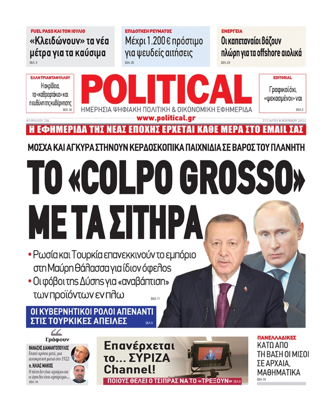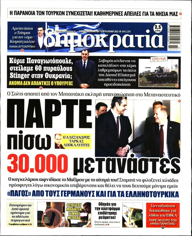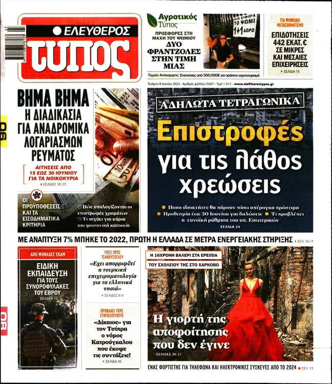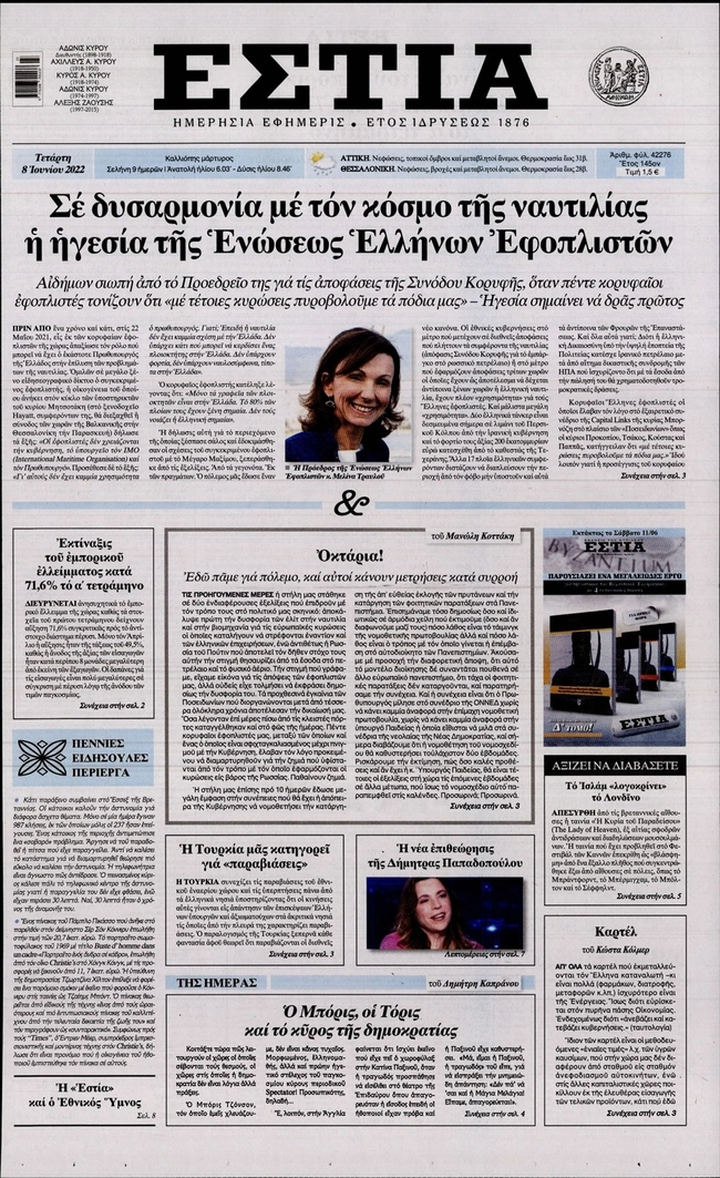 Τα πρωτοσέλιδα των ελληνικών εφημερίδων για σήμερα Τετάρτη 8 Ιουνίου. Δείτε τι φιλοξενεί στην πρώτη του σελίδα ο πολιτικός και οικονομικός Τύπος και τα θέματα της επικαιρότητας που ξεχωρίζουν.