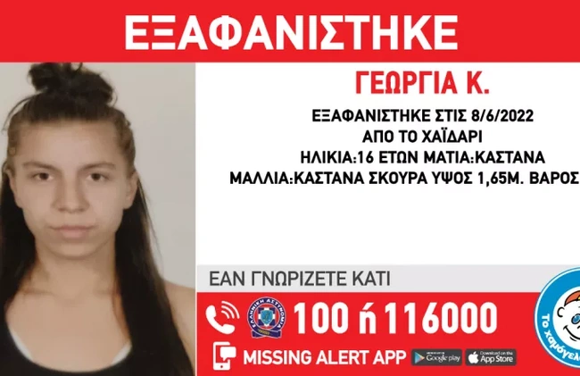 Σε συναγερμό έχουν τεθεί οι Αρχές και το «Χαμόγελο του Παιδιού» ύστερα από την εξαφάνιση μιας 16χρονης από το Χαϊδάρι. Οπως αναφέρει το σχετικό ανακοινωθέν, η Γεωργία Κ. εξαφανίστηκε χθες, 8 Ιουνίου το μεσημέρι από το Χαϊδάρι Αττικής. Το «Χαμόγελο του Παιδιού» ενημερώθηκε για την εξαφάνιση της ανήλικης και προέβη άμεσα στη δημοσιοποίηση των στοιχείων της κατόπιν αιτήματος της οικογένειάς της, καθώς η ζωή της βρίσκεται σε κίνδυνο.