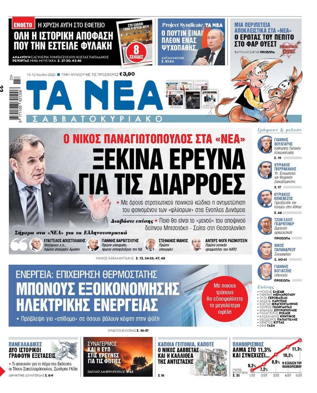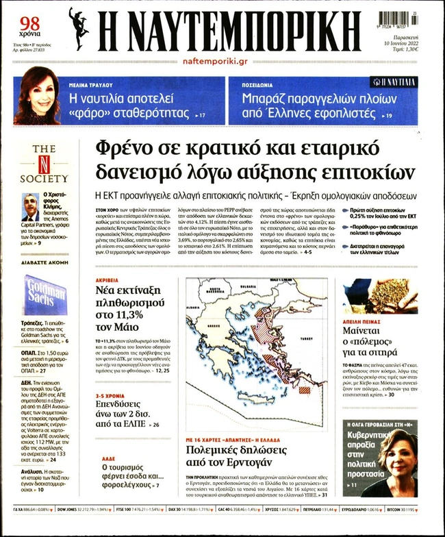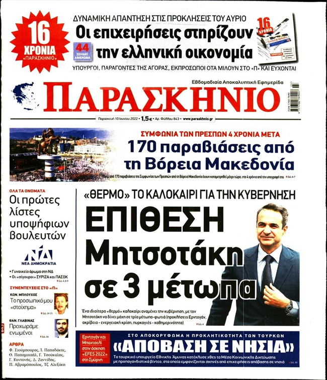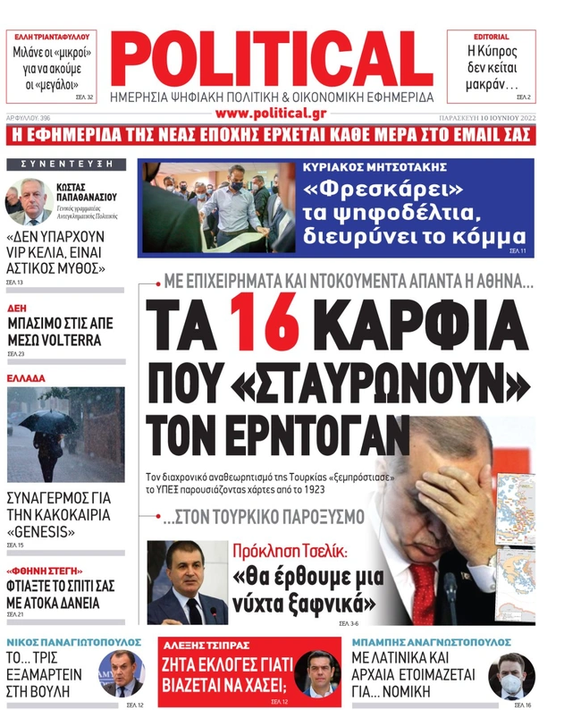 Τα πρωτοσέλιδα των ελληνικών εφημερίδων για σήμερα Παρασκευή 10 Ιουνίου. Δείτε τι φιλοξενεί στην πρώτη του σελίδα ο πολιτικός και οικονομικός Τύπος και τα θέματα της επικαιρότητας που ξεχωρίζουν.