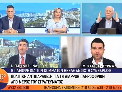 «Συντομεύστε όμως κ. Κάτση, να χαρείτε! Αν μιλάτε 15 λεπτά εσείς, 15 λεπτά ο κ. Γαϊτάνης, εμείς θέλουμε 15 ώρες εκπομπής!» είπε αρχικά ο Γιώργος Παπαδάκης.