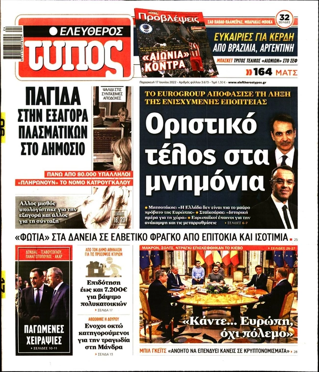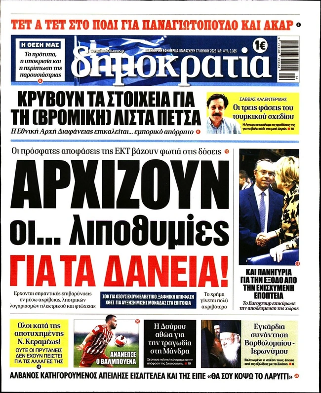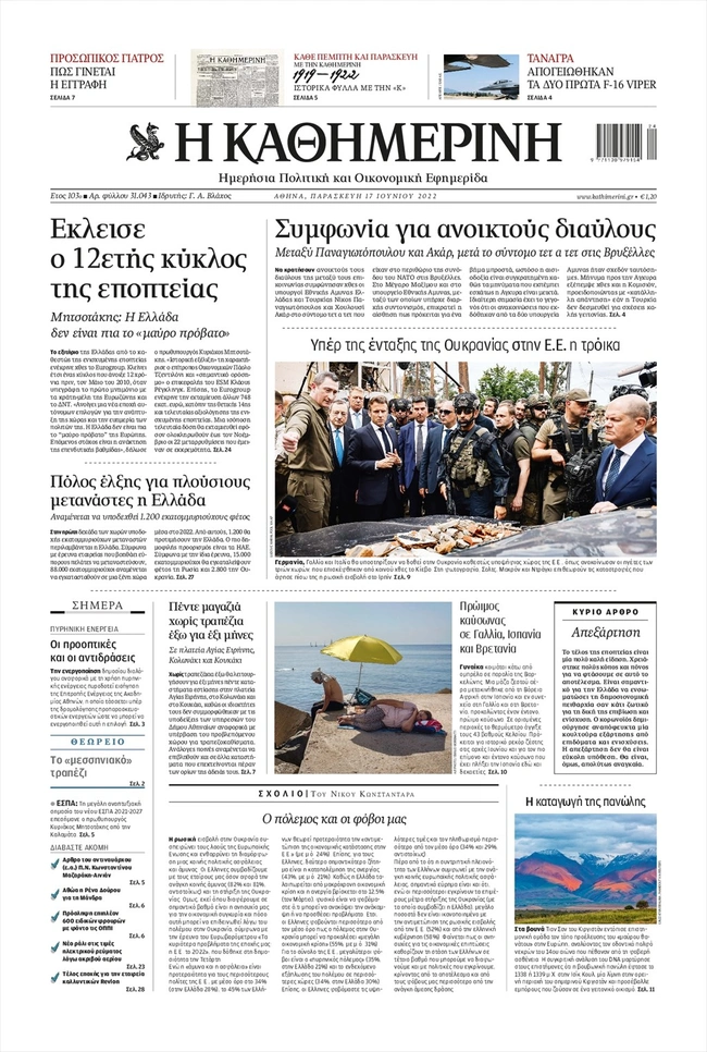 Τα πρωτοσέλιδα των ελληνικών εφημερίδων για σήμερα Παρασκευή 17 Ιουνίου. Δείτε τι φιλοξενεί στην πρώτη του σελίδα ο πολιτικός και οικονομικός Τύπος και τα θέματα της επικαιρότητας που ξεχωρίζουν.