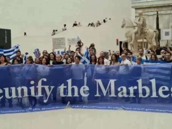 Αρκετές δεκάδες διαδηλωτές, Ελληνες, αλλά και Βρετανοί, συγκεντρώθηκαν στο Βρετανικό Μουσείο, στην αίθουσα που φιλοξενεί τα Γλυπτά του Παρθενώνα σε μία κίνηση διαμαρτυρίας για την επιστροφή τους στην Αθήνα.