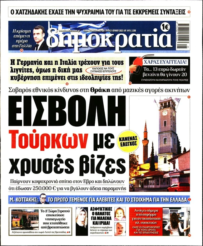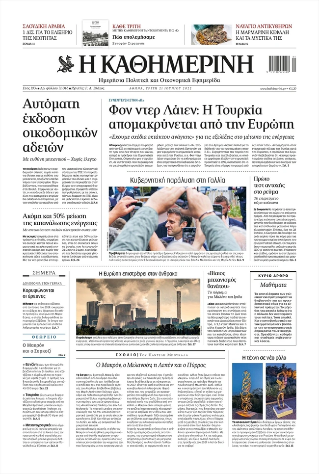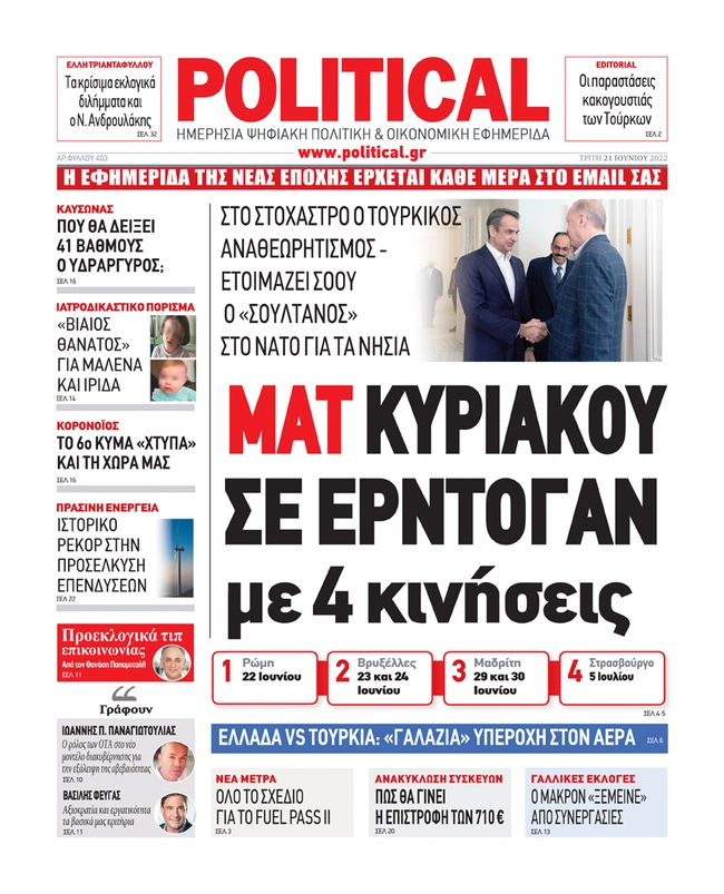 Τα πρωτοσέλιδα των ελληνικών εφημερίδων για σήμερα Τρίτη 21 Ιουνίου. Δείτε τι φιλοξενεί στην πρώτη του σελίδα ο πολιτικός και οικονομικός Τύπος και τα θέματα της επικαιρότητας που ξεχωρίζουν.