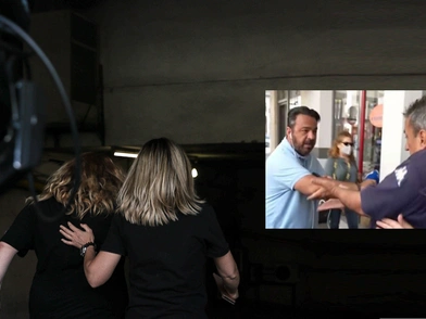 Οταν εκείνη εξήλθε του κτηρίου της ζήτησε μια δήλωση, όμως εκείνη άνοιξε το βήμα της και πήγε να φύγει, ενώ ο συγγενής που ήταν μαζί, επιτέθηκε στον δημοσιογράφο, δύο φορές, με σπρωξιές.