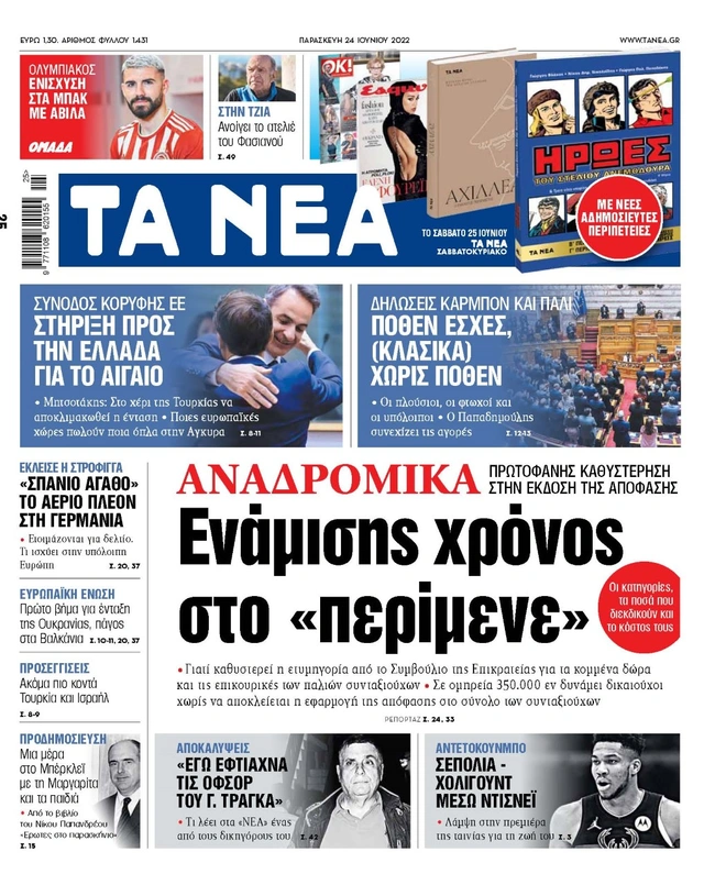 Τα πρωτοσέλιδα των ελληνικών εφημερίδων για σήμερα Παρασκευή 24 Ιουνίου. Δείτε τι φιλοξενεί στην πρώτη του σελίδα ο πολιτικός και οικονομικός Τύπος και τα θέματα της επικαιρότητας που ξεχωρίζουν.