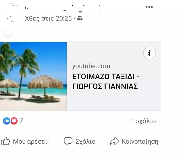 Στο μεταξύ, μόλις χθες στο προφίλ του θύματος υπήρχε μία ανάρτηση από ένα φίλο της, ο οποίος πού να φανταζόταν τι θα ακολουθούσε, της αφιέρωσε ένα τραγούδι που σήμερα φαντάζει μόνο ως τραγική ειρωνεία! Της αφιέρωσε το τραγούδι: «Ετοιμάζω ταξίδι», ενδεχομένως αναφερόμενος σε καλοκαιρινές διακοπές, όμως, μία ημέρα μετά, εκείνη έφευγε για πάντα, βυθίζοντας στη θλίψη τους φίλους της, οι οποίοι δεν γνώριζαν για τα ακραία ένστικτα του συζύγου της, αλλά και τους κινδύνους που μπορούσε να διατρέχει. Μάλιατα, ένας από τους φίλους του θύματος σε κατάθεσή του στην αστυνομία φέρεται να δήλωσε πως: «Δεν μου είχε πει ποτέ τίποτα. Έδειχνε πάντα χαμογελαστή. Τη γνώριζα από το 2009 και έκτοτε ήμασταν φίλοι. Μιλούσαμε συχνά, είχαμε έρθει κοντά σαν συγγενείς. Ήταν τόσο καλός άνθρωπος και τόσο θρήσκα που ήθελε πάντα να βοηθάει τους συνανθρώπους γύρω της».