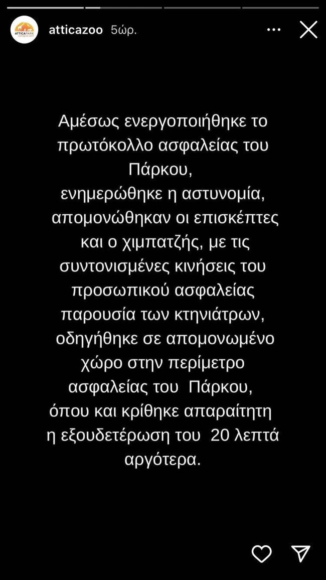 Τα stories που ανέβασε στον επίσημο λογαριασμό του το Αττικό Ζωολογικό Πάρκο: