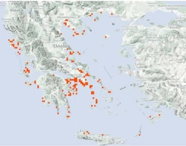 Με μικρότερες εμφανίσεις και σε άλλα μέρη της Ελλάδας, με καθαρά να φαίνονται τα νησιά. Στον χάρτη που ακολουθεί θα δείτε όλες τις περιοχές όπου το τελευταίο διάστημα έχει καταγραφεί παρουσία μωβ μεδουσών.
