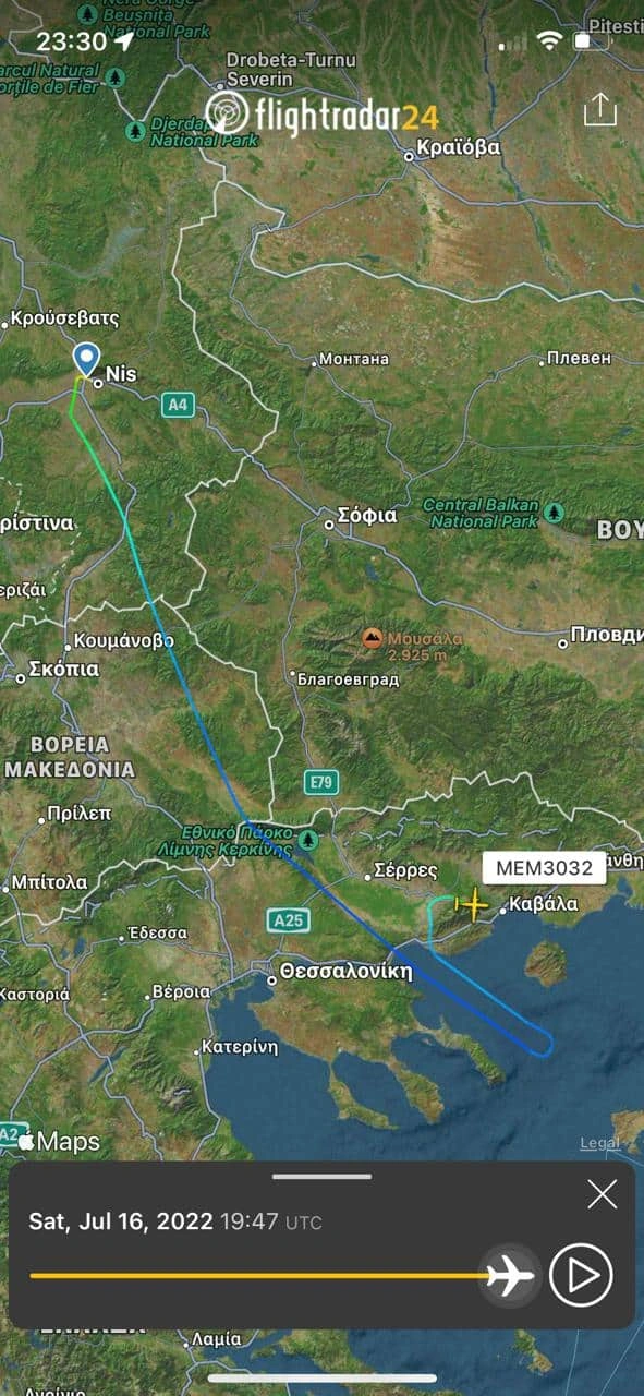 Η πορεία που ακολούθησε το αεροπλάνο