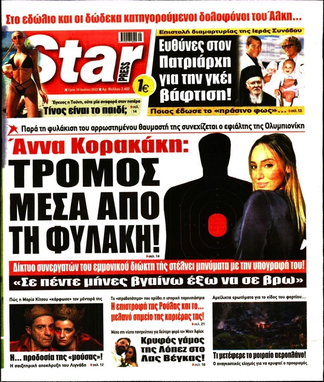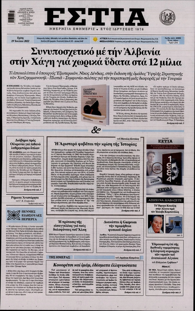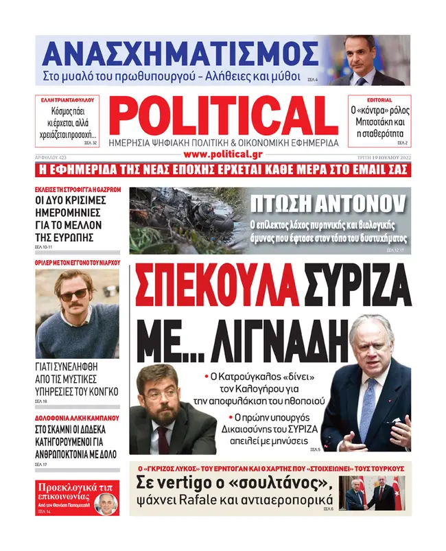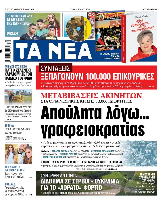 Τα πρωτοσέλιδα των ελληνικών εφημερίδων για σήμερα Τρίτη 19 Ιουλίου. Δείτε τι φιλοξενεί στην πρώτη του σελίδα ο πολιτικός και οικονομικός Τύπος και τα θέματα της επικαιρότητας που ξεχωρίζουν.