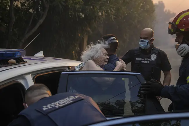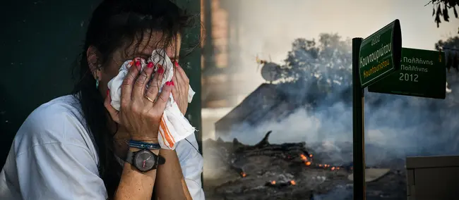 Επίσης η Ελένη Γερασιμίδου αντίκρισε το σπίτι της να καίγεται: «Στις 4:00 τα ξημερώματα μας έπνιξε ο καπνός και φύγαμε από το σπίτι κατ’ απαίτηση της κόρης μας. Σε λίγη ώρα πήρε τηλέφωνο μια γειτόνισσα που παρέμεινε εδώ, ενώ θέλαμε να την πάρουμε μαζί, και μας είπε ότι το σπίτι μας καίγεται. Δεν μπορέσαμε να έρθουμε κατά δω, δεν μας άφηναν. Ήταν 18 πυροσβεστικά στη Μαραθώνος. Τους πήραμε τηλέφωνο αλλά τίποτα. Μέχρι τώρα πυροσβεστικό δεν ήρθε».